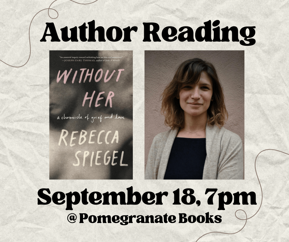 Join us for an author reading at Pomegranate at 7pm on Wednesday, September 18th with author Rebecca Spiegel—a graduate of the UNCW Creative Writing Program—who will read from her debut book “Without Her,” a lucid memoir reckoning with grief and the search for meaning in the wake of a sister’s suicide.